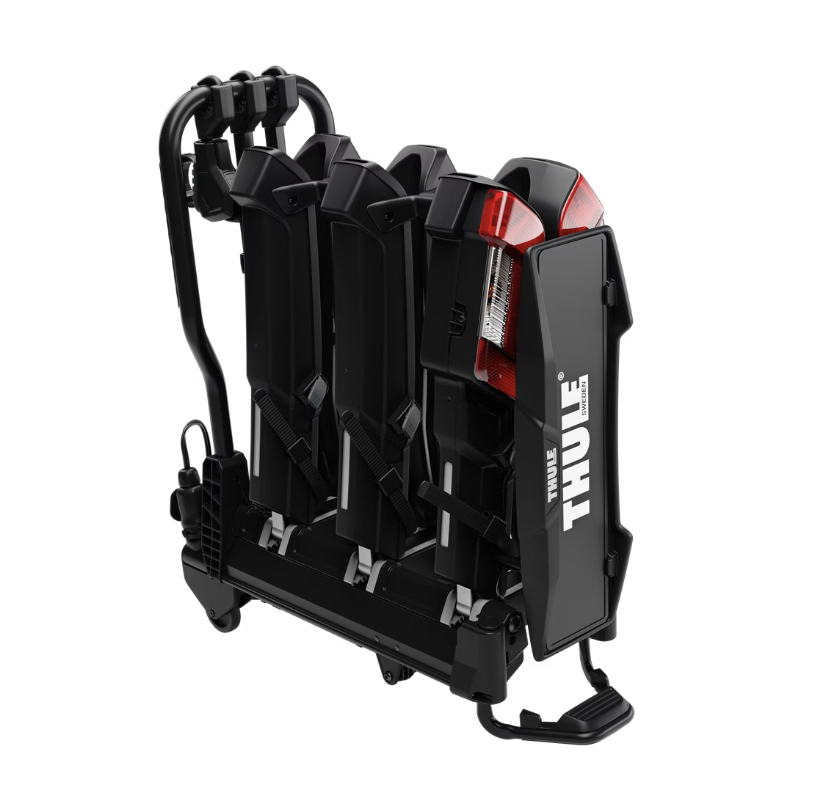 Thule EasyFold 3 fietsendrager voor op de trekhaak is een volledig opvouwbare, compacte en gebruiksvriendelijke fietsendrager voor op de trekhaak voor een breed scala aan fietsen en e-bikes. Het laden van zware fietsen gaat moeiteloos en met de optionele laadklep is het nog makkelijker. Deze duurzame fietsendrager geeft je ook volledige toegang tot de kofferbak, zelfs met de fietsen erop. Vouw de fietsendrager op tot een compact formaat en berg hem op in je kofferbak, perfect voor een spontaan fietsavontuur.